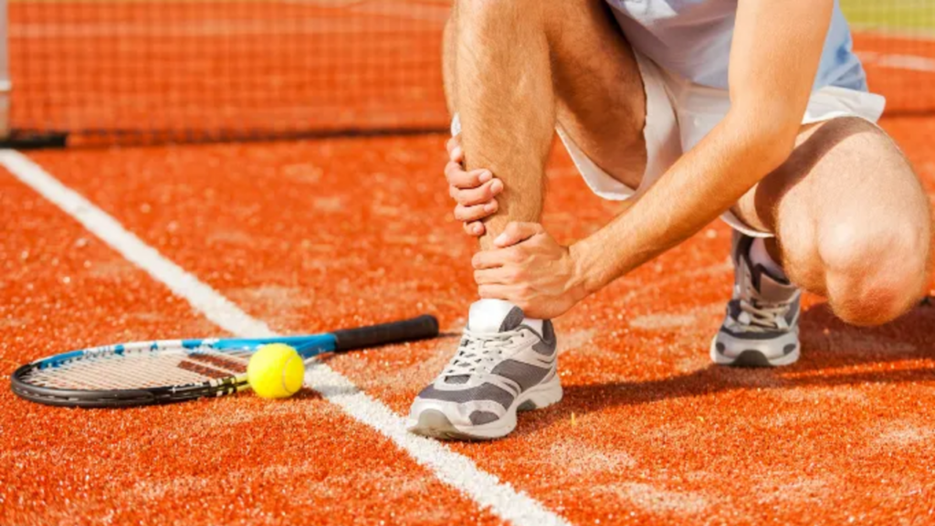 Jogador de tênis com a mão no tornozelo - Fonte: mmsspt.com