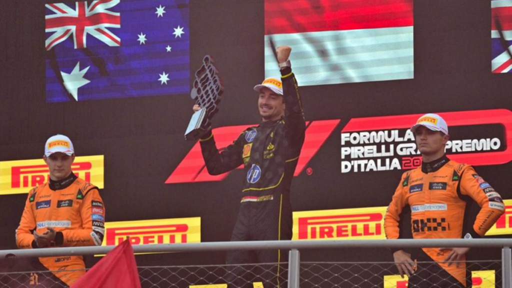 Lando Norris largou na pole position no GP da Itália e teve um bom início de prova. No entanto, na Curva 4, foi ultrapassado pelo companheiro de equipe, Oscar Piastri, o que pode ter lhe custado a vitória. A dupla da McLaren conquistou apenas o segundo e terceiro lugar, ‘perdendo’ o degrau mais alto do pódio da Fórmula 1 para a Ferrari de Charles Leclerc.