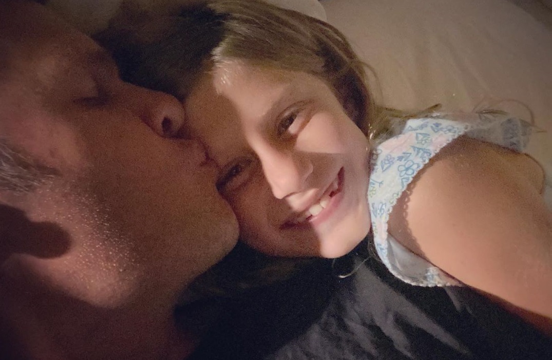 O jogador do Buccaneers compartilhou um clique agarradinho com a filha mais nova, Vivian, de 7 anos, fruto de seu relacionamento com a top brasileira Gisele Bündchen. Na imagem, o atleta aparece deitado com a menininha, toda sorridente, dando um beijinho em sua testa.