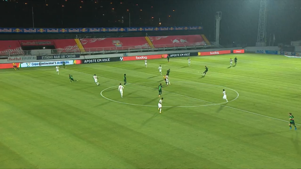 O Bragantino seguiu na tentativa de diminuir o placar e quase conseguiu. Aos 26, Lucas Evangelista aproveitou cruzamento e cabeceou fraco. Dois minutos mais tarde, Luis ajeitou e bateu para o gol. Na trajetória, a bola desviou e passou perto da trave. Pressão do Massa Bruta!