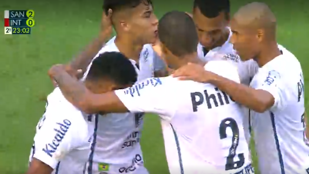 2T/14′: CARIMBA QUE É GOL DE #MeninoDaVila! Ivonei bate falta fechada e a bola entra! VAMOS!#SANxINT | 1×0 pic.twitter.com/EvdavryPxQ