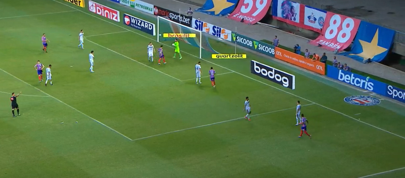 Com um a menos, Bahia vence Goiás e sai da zona de rebaixamento do Brasileirão (Crédito: Transmissão/ Premiere)