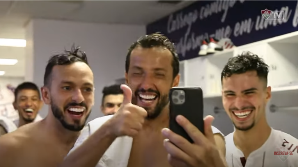 Jogadores do Fluminense se divertindo no vestiário - Transmissão FLU TV