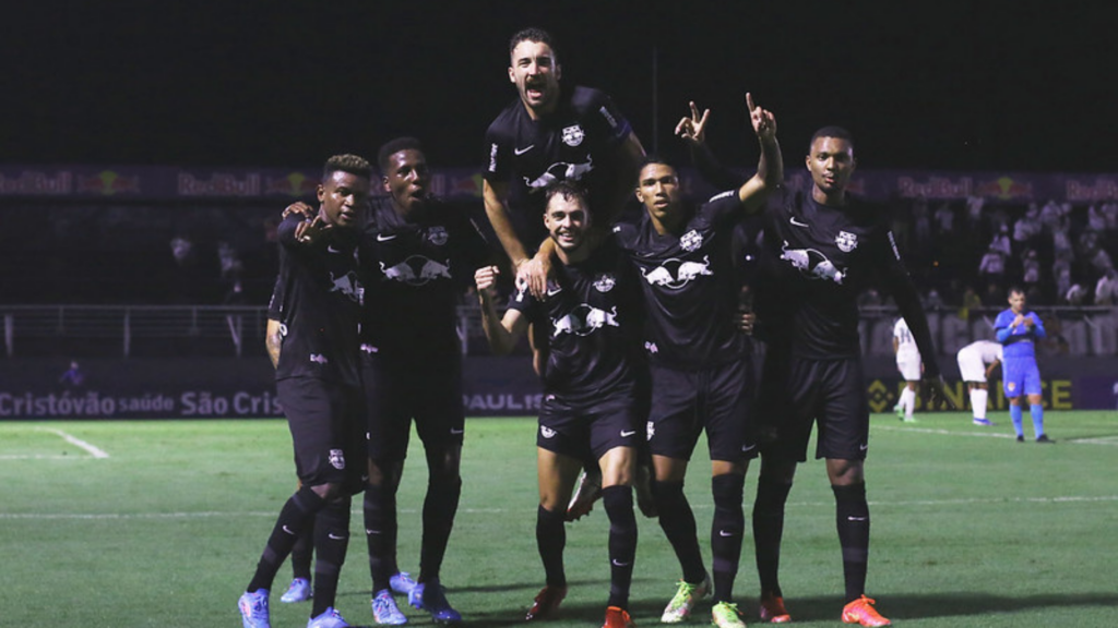 Jogadores do Bragantino comemorando o gol diante do São Paulo (Crédito: Ari Ferreira/Red Bull Bragantino/Flickr)