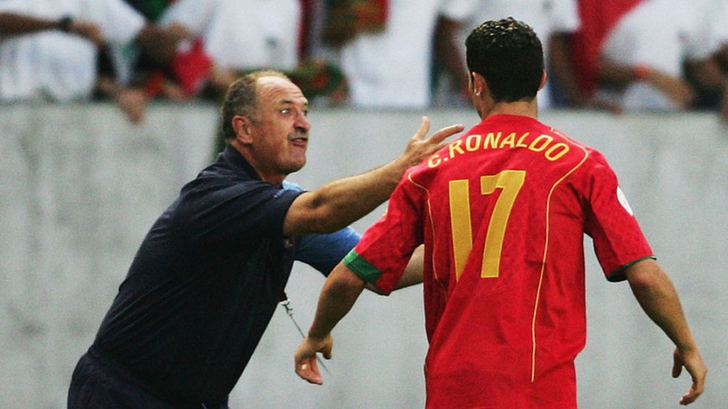 Felipão e Cristiano Ronaldo trabalharam juntos na seleção de Portugal durante cinco temporadas, mas Scolari não conseguiu ser campeão ao lado de CR7. Para quem não sabe, ambos ficaram próximos de ganhar a Eurocopa de 2004, mas perderam para a Grécia e frustraram os portugueses.