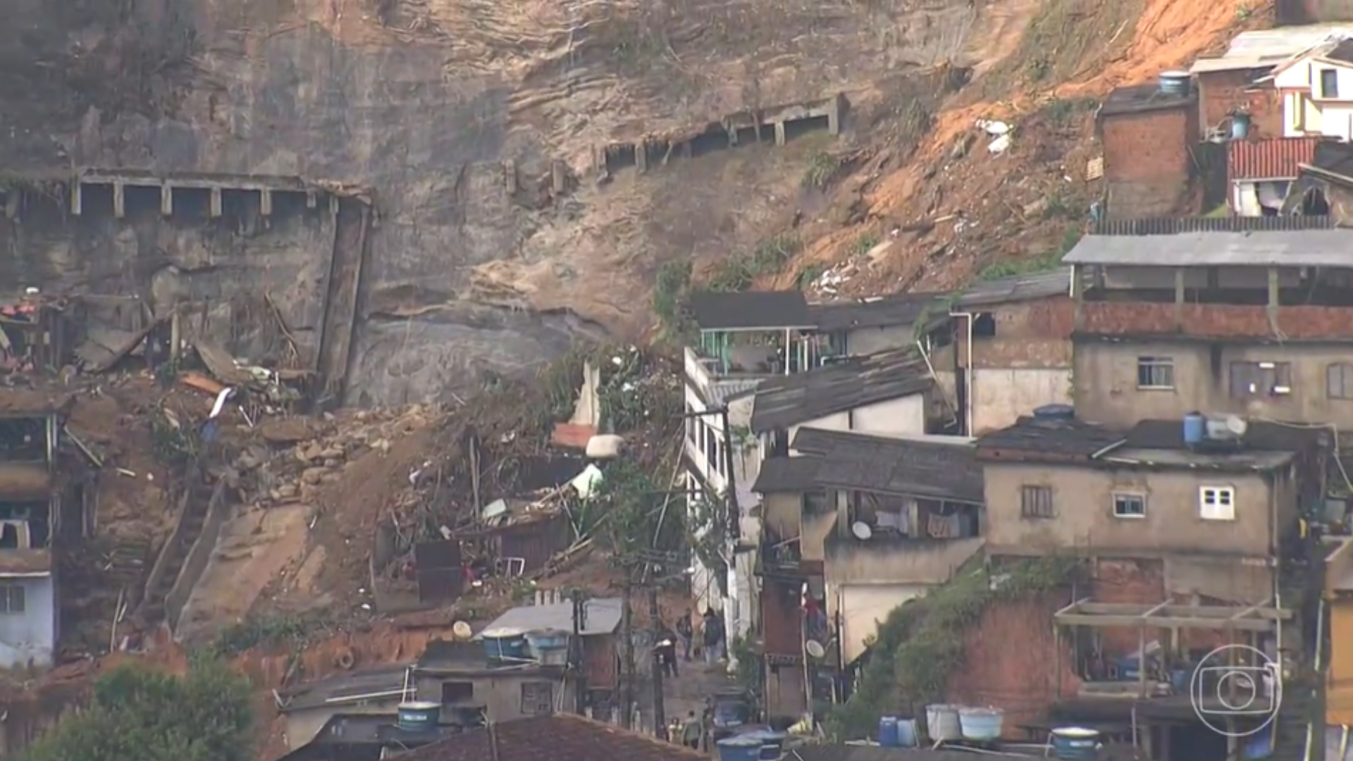 Estrago causado pelas chuvas em Petrópolis, que está sendo ajudada por clubes cariocas (Crédito: Transmissão TV Globo)