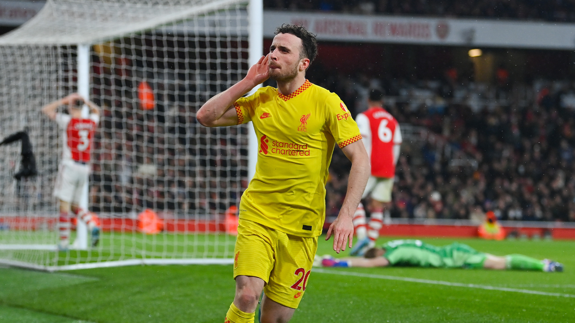 Já na segunda etapa, Diogo Jota aproveitou a falha do goleiro do Arsenal e abriu o placar aos nove minutos. O português recebeu de Thiago Alcântara, invadiu a área pelo lado esquerdo e, sem muito ângulo, conseguiu uma batida firme, de canhota, que acertou o canto direito, entre a trave e o goleiro inglês, que até chegou a tocar na bola, mas não conseguiu evitar o gol.