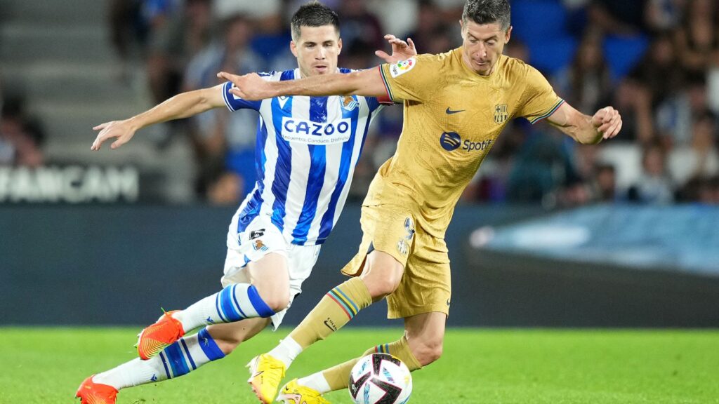 A partida teve início com o belo desempenho da aquisição recente mais badalada do Blaugrana: Lewandowski, após receber o chute cruzado de Balde, bateu de primeira dentro da área no primeiro ataque do Barcelona, no primeiro minuto decorrido. No entanto, apesar do revés, o Real Sociedad mostrou que não entregaria os três pontos com facilidade.