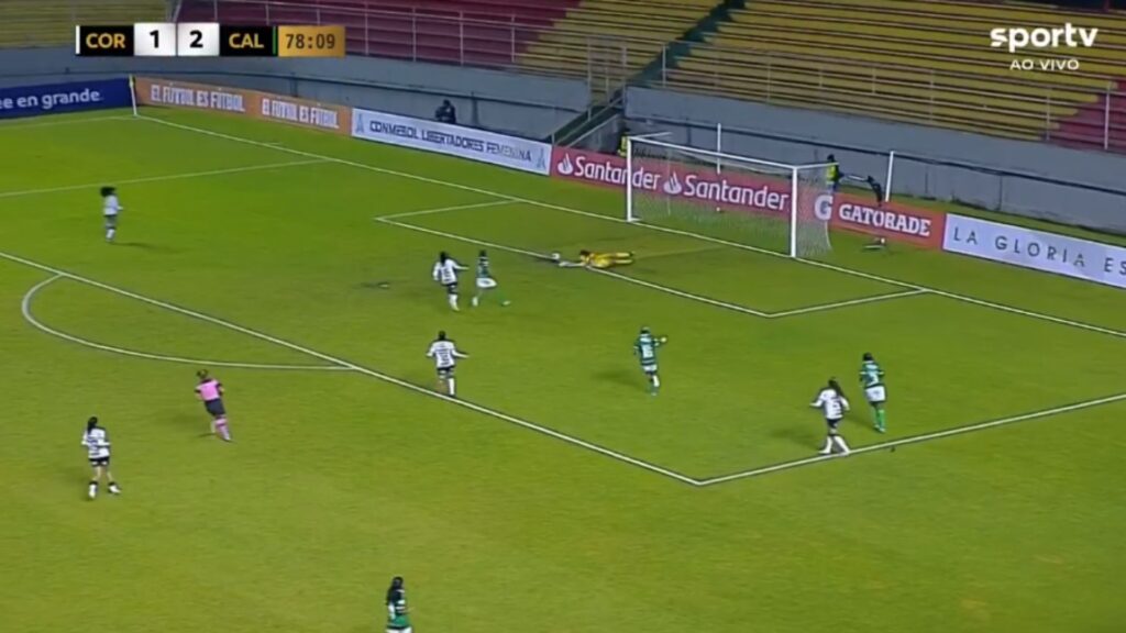 A reação do Deportivo Cali veio ainda no primeiro tempo, e o time precisou de quatro minutos para virar o placar e garantir o resultado. Aos 41, Caicedo cobrou a falta e mandou na área para Ingrid Guerra, que ganhou de Paty para completar: 1 a 1. Aos 45, Guerra cruzou para Paví, que deixou para Ariza chutar firme: 2 a 1.