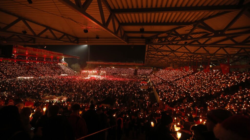 Com direito a cachecóis, gorros vermelhos, velas, bandas, cantos da torcida e um espírito de muito amor, o Union Berlin lotou seu estádio, o An der Alten Försterei, para celebrar a tradicional festa de Natal do clube ao lado de sua torcida. O evento completou 20 anos de existência neste ano de 2023 e reuniu quase 30 mil torcedores para a comemoração.