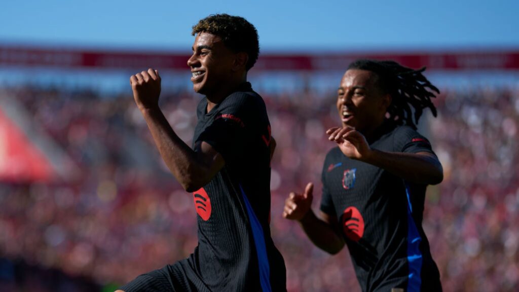 Lamine Yamal comemora gol feito pelo Barcelona