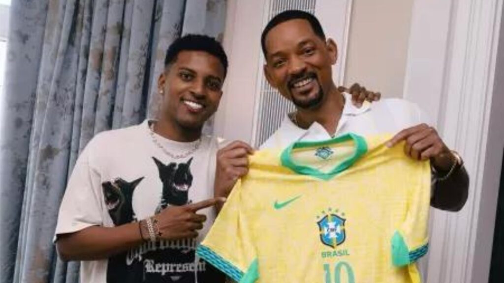 Em maio deste ano, o jovem do Real Madrid recebeu a estrela de Hollywood na capital espanhola. À época, Smith divulgava o seu filme “Bad Boys 4” na Europa. O atacante, que havia sido convocado para defender a Seleção Brasileira na Copa América, presenteou o astro com a camisa 10 da Amarelinha.