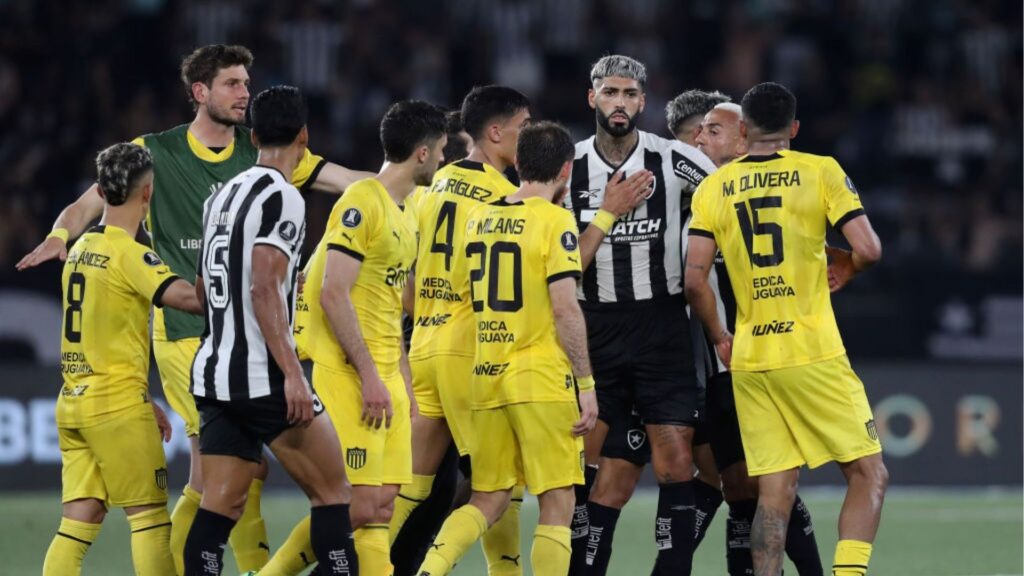 O confronto começou antes mesmo de a bola rolar. Ao longo da última quarta-feira, 23, foram registradas uma série de confusões envolvendo torcedores do Botafogo e do Peñarol. Com uruguaios e brasileiros detidos, ônibus e veículos incendiados, a semifinal começou com cenas lamentáveis. Além disso, por uma má logística do trânsito até o Nilton Santos, a partida começou atrasada.