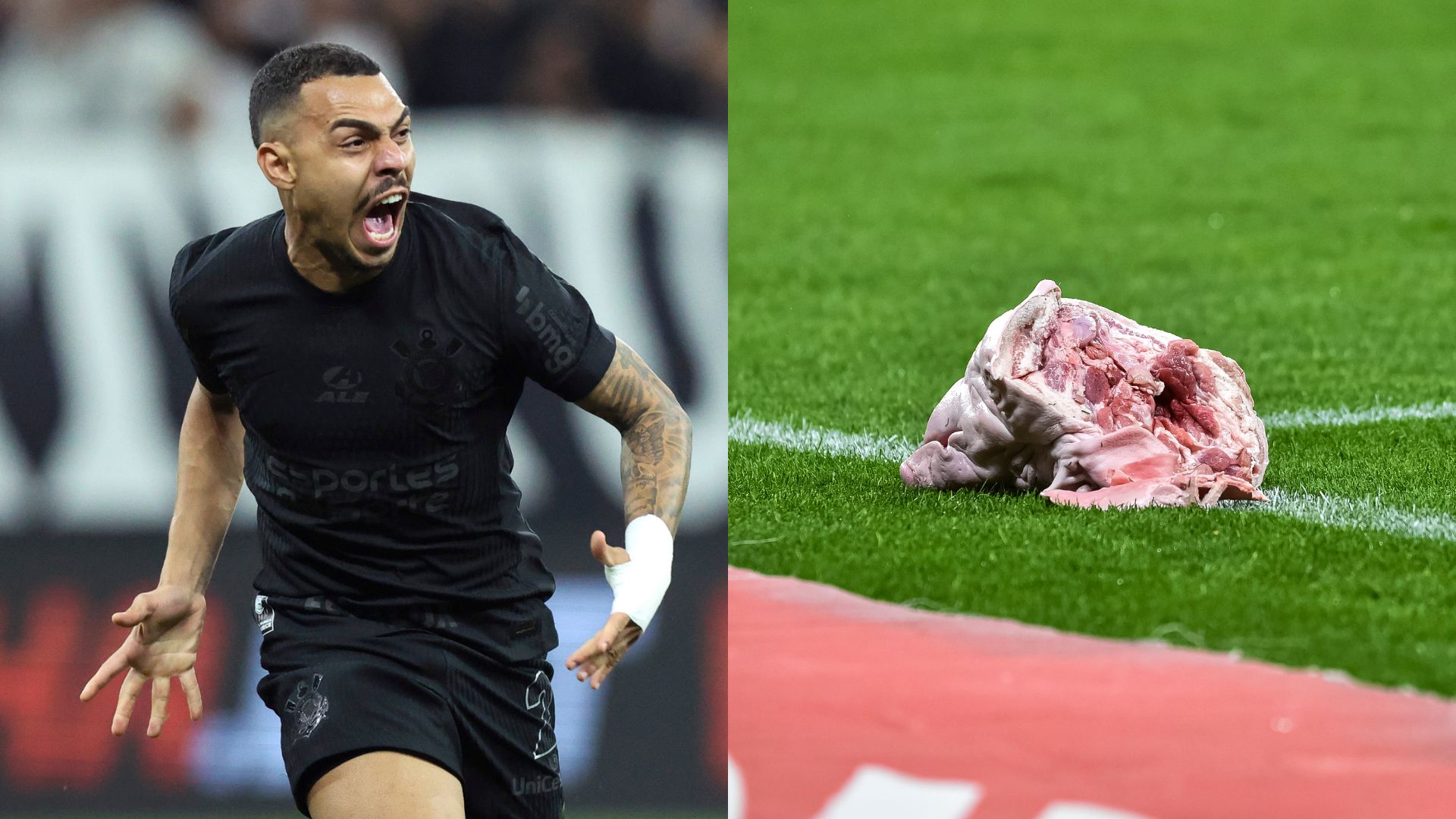“Sinceramente, eu nem sabia que era uma cabeça de porco. Na verdade, eu tava ali até dentro da área, eu achei que era uma almofada, uma sacola, porque ali não dava para ver muito bem, só que quando o Yuri chutou, até pensei em cimento, não sei”, iniciou o atleta do Corinthians.