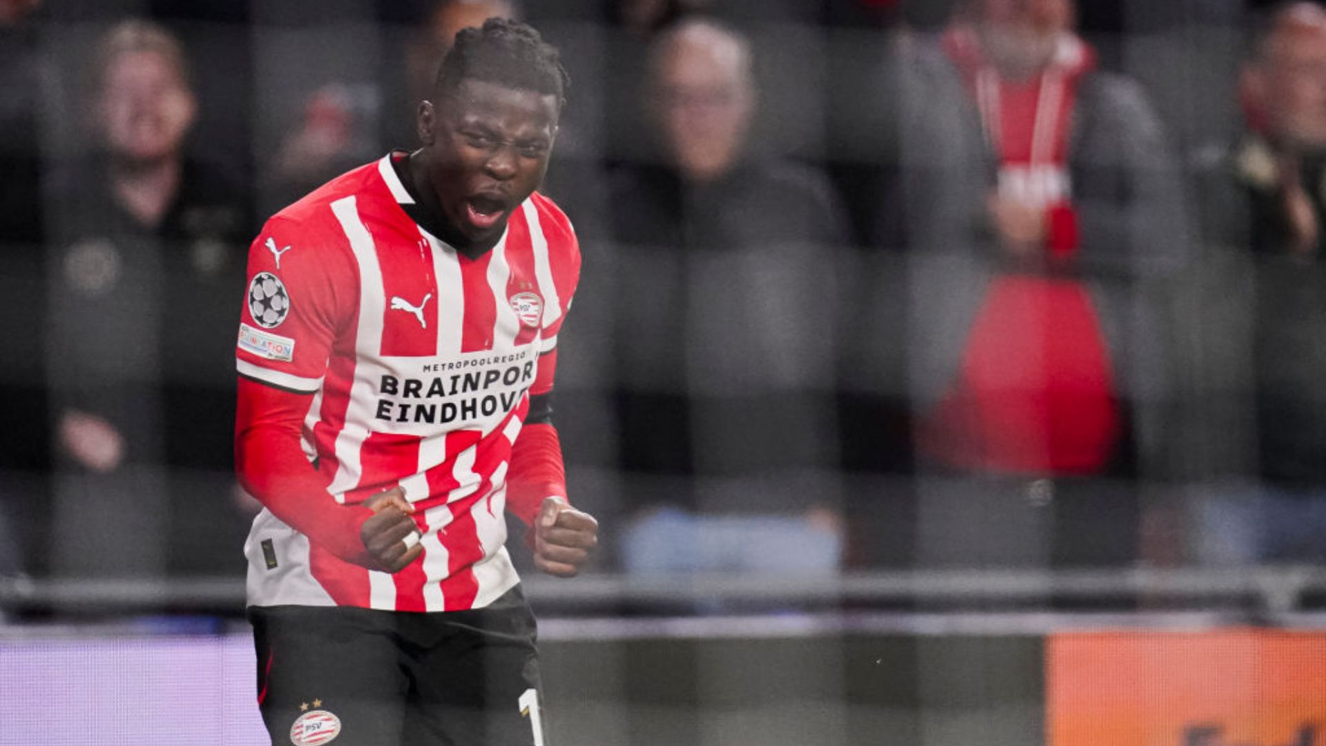 Johan Bakayoko, do PSV, comemora o gol marcado contra o Girona, em partida válida pela Champions League
