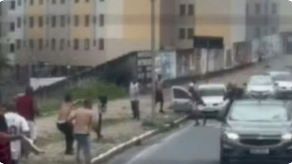 Nas imagens que circulam nas redes sociais, torcedores com a camisa do Flamengo disparam fogos de artifício na direção dos atleticanos. Em outro momento, um carro invadiu o local em direção dos cariocas, quase os atropelando, além de também ter visto outros veículos passando por perto para escapar da zona da confusão.