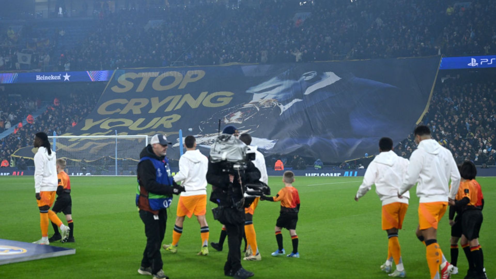 Os responsáveis pelo bandeirão exibido pela torcida do Manchester City no duelo contra o Real Madrid pela Champions League negaram que a mensagem tenha sido uma provocação a Vinicius Jr. A faixa mostrava Rodri beijando a Bola de Ouro ao lado da frase: “pare de chorar tanto”.