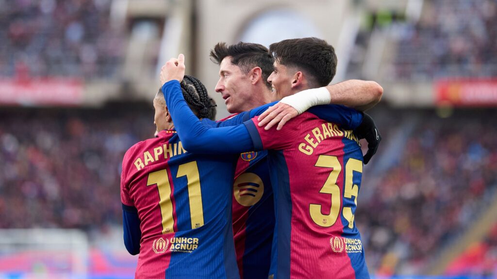 Assim, o caminho ficou aberto para os mandantes. Gerard Martín abriu o marcador aos 25 minutos. Casadó veio logo na sequência e balançou as redes com a camisa do Blaugrana pela primeira vez, aos 28 do primeiro tempo. Após o intervalo, Ronald Araújo ampliou de cabeça ao aproveitar um rebote, e Lewandowski cravou a goleada impiedosa.
