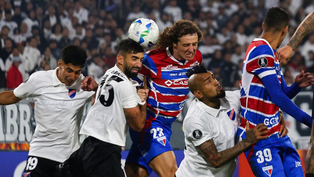 David Luiz disputa bola no confronto entre Colo-Colo x Fortaleza