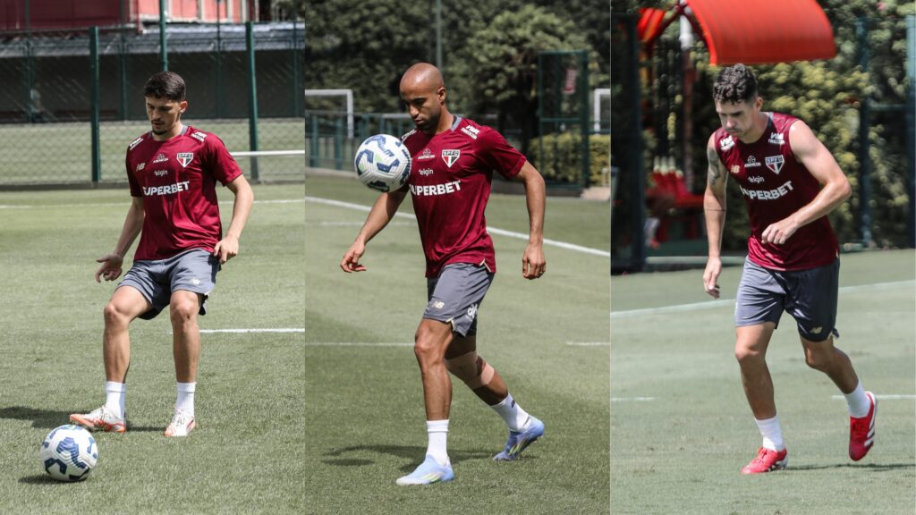 Da mesma forma, Lucas Moura também deve retornar no Paraguai — ao menos essa é a esperança da comissão técnica tricolor. Fora há mais de um mês, o camisa 7 treinou com bola nesta última segunda-feira. Ele caiu de joelhos no gramado do Allianz Parque durante a semifinal do Paulistão, contra o Palmeiras, e ainda sente dores em alguns movimentos no joelho direito.