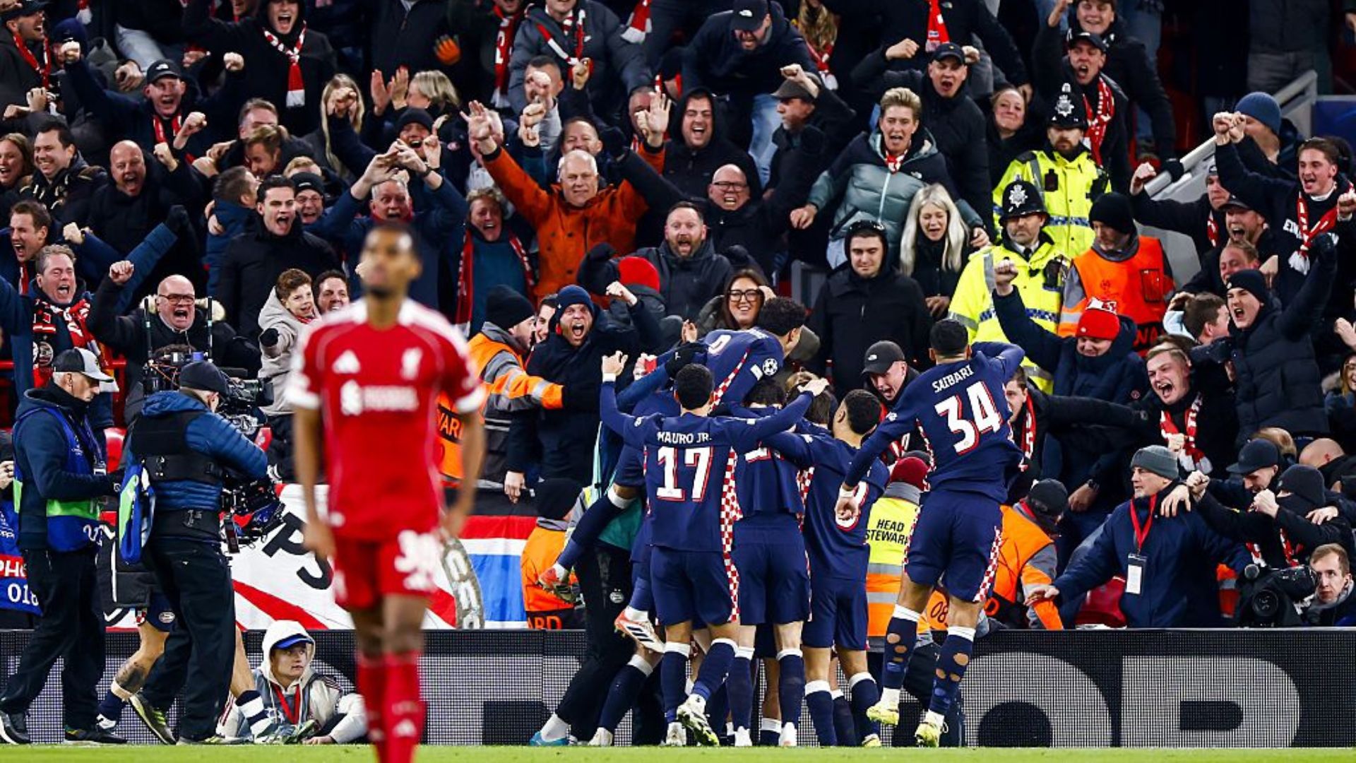 O Liverpool recebeu o PSV, nesta quarta-feira, 26, pela quinta rodada da Champions League, em Anfield, na Inglaterra. Os visitantes venceram por 4 a 1, com gols de Ivan Perisic, Guus Til e Couhaib Driouech (dois). Dominik Szoboszlai descontou para os ingleses.