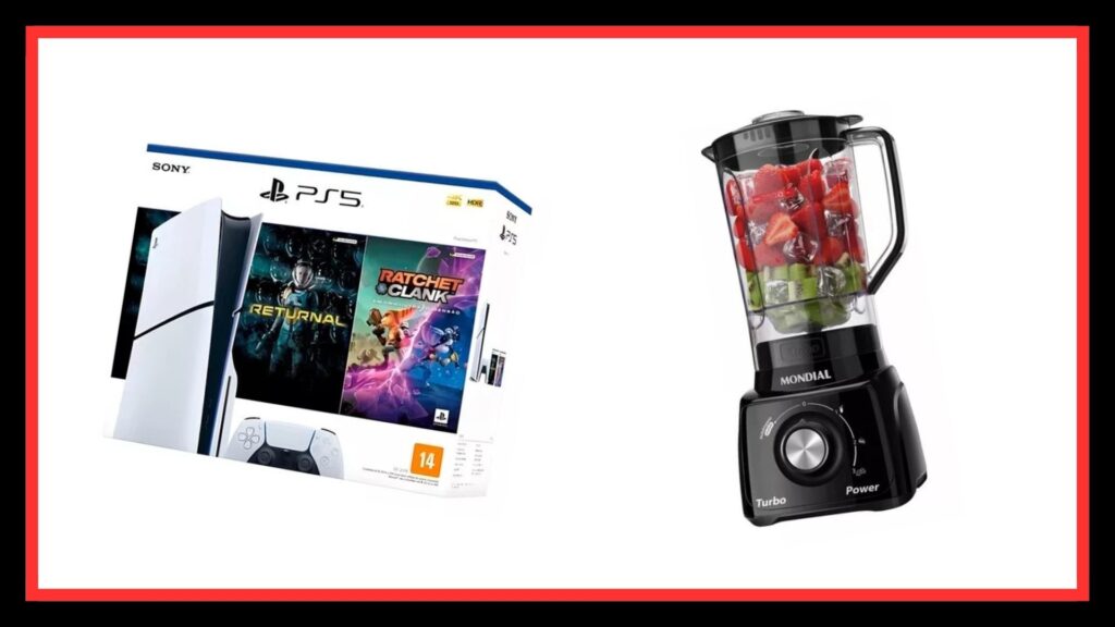 - PlayStation 5 Slim Standard + Ratchet Clank & Returnal – https://mercadolivre.com/sec/1ZzF1PC
