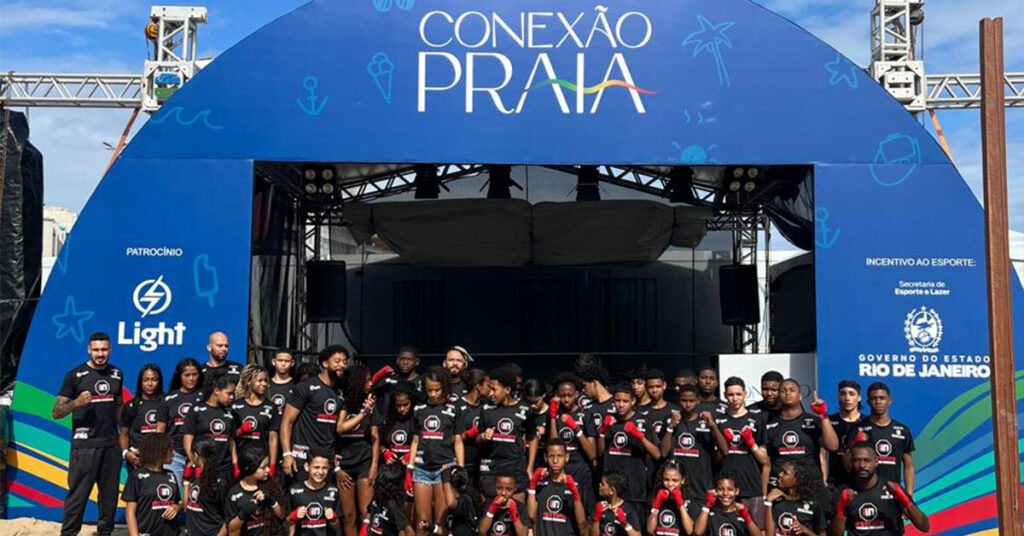 Na última sexta-feira (15/11), a praia de Ipanema, na Zona Sul do Rio de Janeiro, foi palco de um evento inédito de inclusão social promovido pelo Instituto Irmãos Nogueira, em parceria com o Conexão Praia. A iniciativa contou com a participação de mais de 80 crianças e jovens do projeto “Luta Escola da Vida – Light”, desenvolvido pelo Instituto Irmãos Nogueira no núcleo da comunidade do Jacarezinho. Os participantes tiveram a oportunidade de participar de uma aula de boxe comandada pelo lendário lutador Rogério Minotouro.
