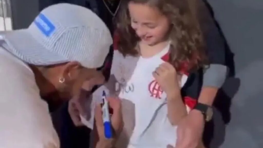 Neymar se declarou Flamengo quando apareceu autografando a camisa de uma pequena torcedora - Reprodução Redes Sociais