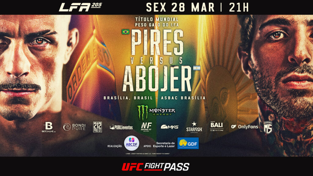 Realizado em parceria com a Secretaria de Estado de Esporte e Lazer do Distrito Federal, o LFA 205 terá o card principal transmitido ao vivo e com exclusividade para o mundo inteiro através do UFC Fight Pass, a partir das 21h, no horário local.