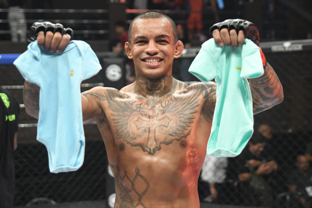 Além de comemorar a vitória, Monteiro celebrou também a expectativa pela chegada de seus filhos gêmeos, anunciando um momento especial em sua carreira dentro e fora do cage.