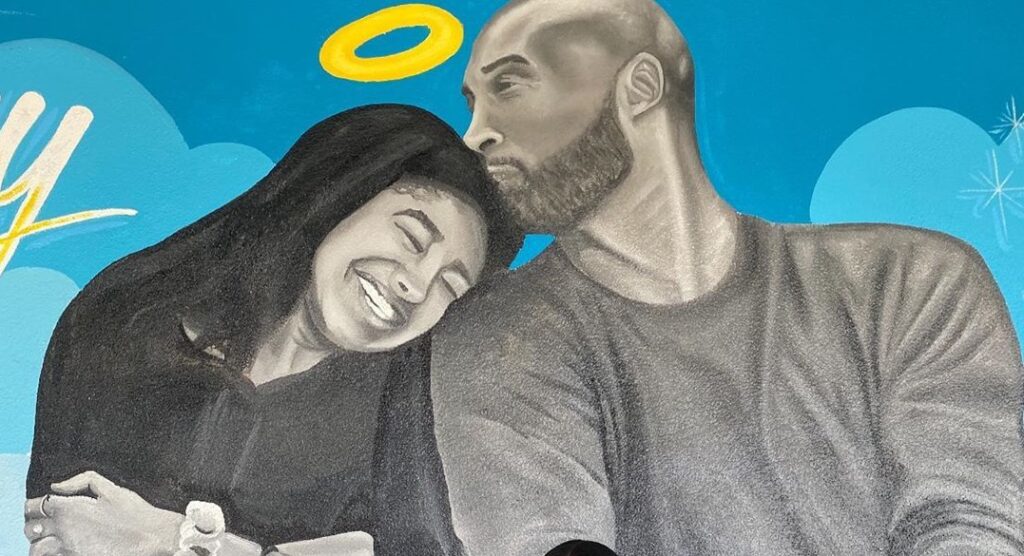 Compartilhada por Vanessa Bryant, viúva do ex-jogador, Natalia parou para posar em frente a um mural que mostra Gianna e Kobe retratados como anjos.