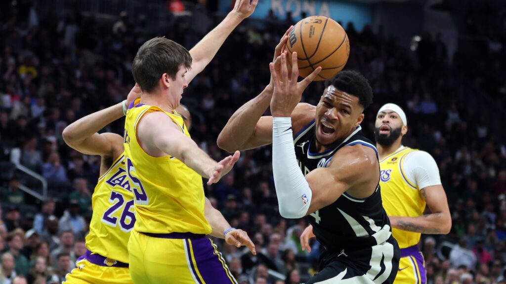 Giannis Antetokounmpo sendo dominante contra o Lakers hoje.