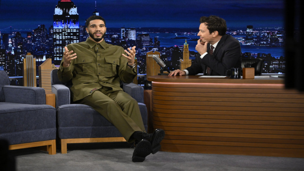 Além das previsões sobre a final, Tatum também compartilhou seu desejo de ganhar o prêmio de MVP. Quando Fallon perguntou sobre suas chances, Tatum respondeu com bom humor: “eu posso dizer que serei eu?”, arrancando risadas do público. Um dos principais concorrentes de Jayson nessa disputa é Luka Doncic, do Mavericks. Assim como Tatum, Doncic está entre os favoritos para conquistar o prestigiado prêmio MVP.