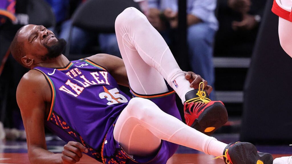 Durante a derrota para o Houston Rockets na noite deste domingo (30), Kevin Durant torceu o tornozelo esquerdo e deixou a partida ainda no terceiro quarto, acendendo um sinal de preocupação no Phoenix Suns, que já enfrenta dificuldades na luta por uma vaga no play-in da NBA.