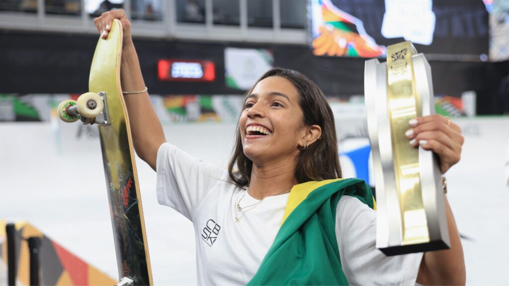 Em seus primeiros minutos em Paris, Rayssa falou sobre o sonho do ouro. “É a meta de todo mundo. Se divertir e ter um bom resultado. A expectativa está enorme, estou doida para chegar logo na Vila (Olímpica), conhecer o pessoal, ver nossos atletas. Estou entrando na minha segunda Olimpíada, sou muito novinha, e tem gente chegando para a primeira”, disse a skatista.