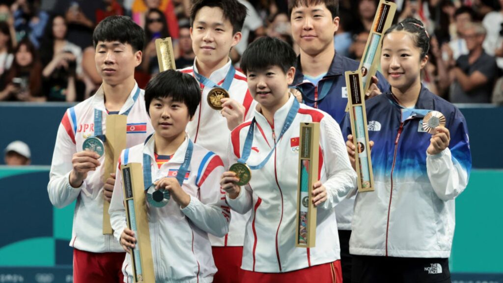 O ouro na competição foi conquistado pela dupla chinesa Chuqin Wang e Yingsha Sun, que convidaram os medalhistas de prata, os norte-coreanos Jong Sik Ri e Kum Yong Kim, e os sul-coreanos Jonghoon Lim e Yubin Shin, que ficaram com o bronze, para uma selfie no pódio. A imagem foi amplamente compartilhada nas redes sociais e foi reconhecida pela revista Time como um dos 12 momentos de maior desportivismo nos Jogos de Paris. No entanto, o gesto de camaradagem não foi bem recebido na Coreia do Norte, que levou para casa seis medalhas nos Jogos, sendo duas de prata e quatro de bronze.