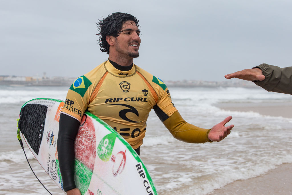 Gabriel Medina saindo do mar depois de se tornar campeão (Crédito: GettyImages)