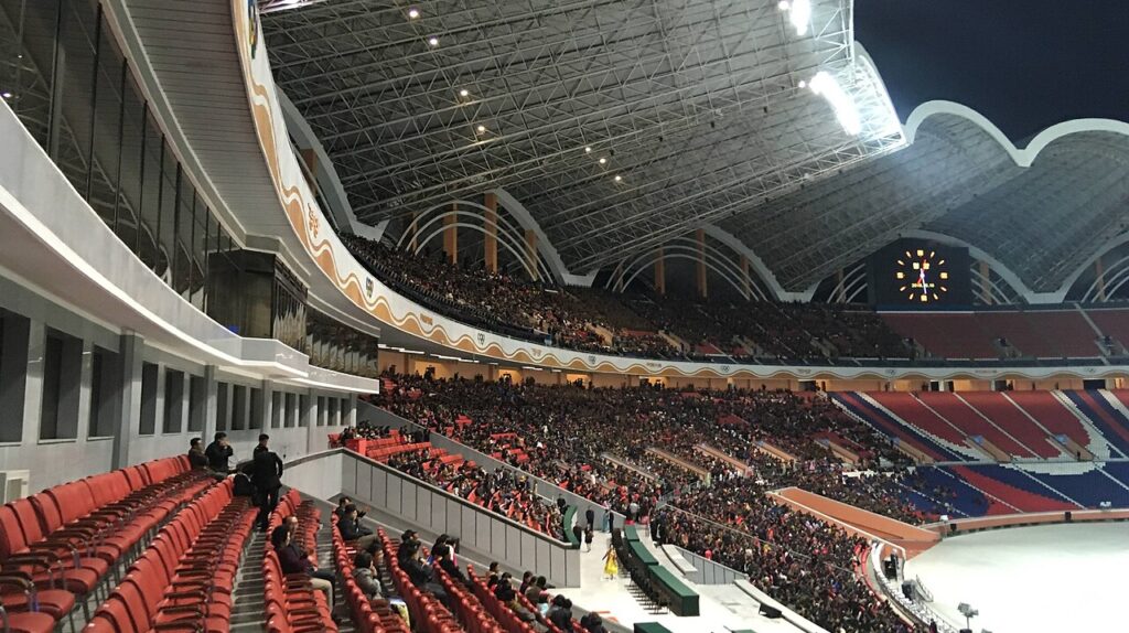 O Rungrado May Day Stadium, localizado em Pyongyang, Coreia do Norte, é reconhecido como o maior estádio do mundo em capacidade, comportando até 150 mil espectadores. Inaugurado em mil novecentos e oitenta e nove, ele é usado para jogos de futebol, eventos esportivos e apresentações culturais de grande escala. Sua arquitetura única em forma de flor de magnólia contribui para a fama internacional do estádio.