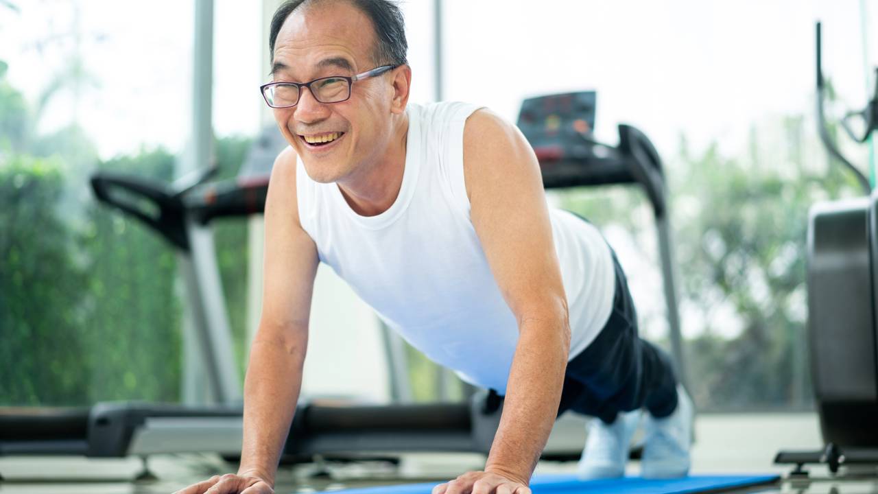Senhor se exercitando feliz em academia - Créditos: depositphotos.com / BiancoBlue