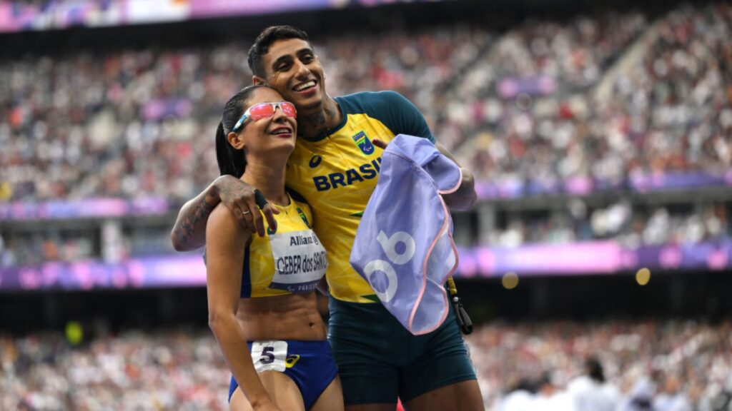 Jerusa e seu guia, Gabriel, comemoram mais um ouro em Paris - Créditos: Getty Images