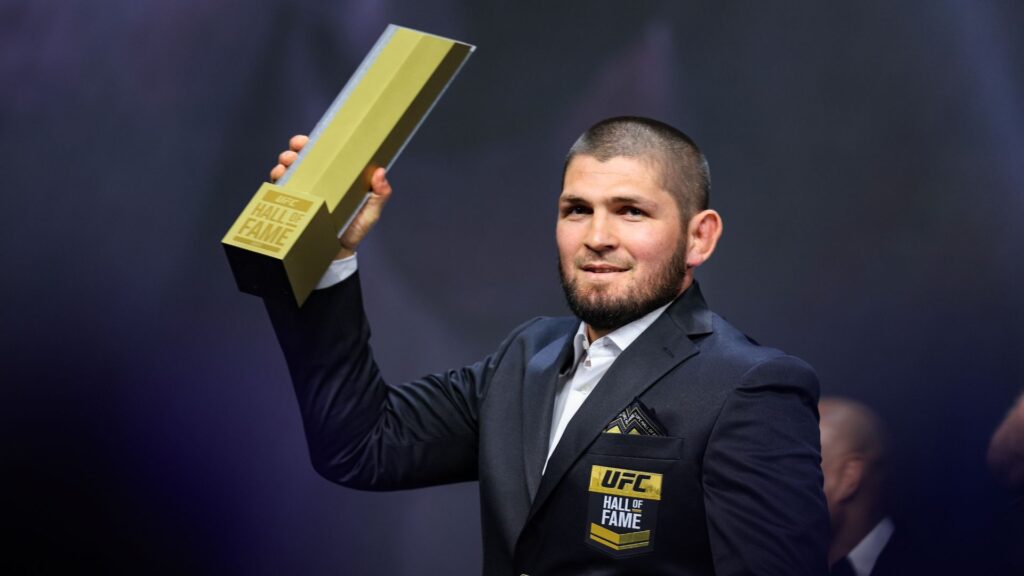Khabib Nurmagomedov recebendo a honraria do Hall Of Fame do UFC