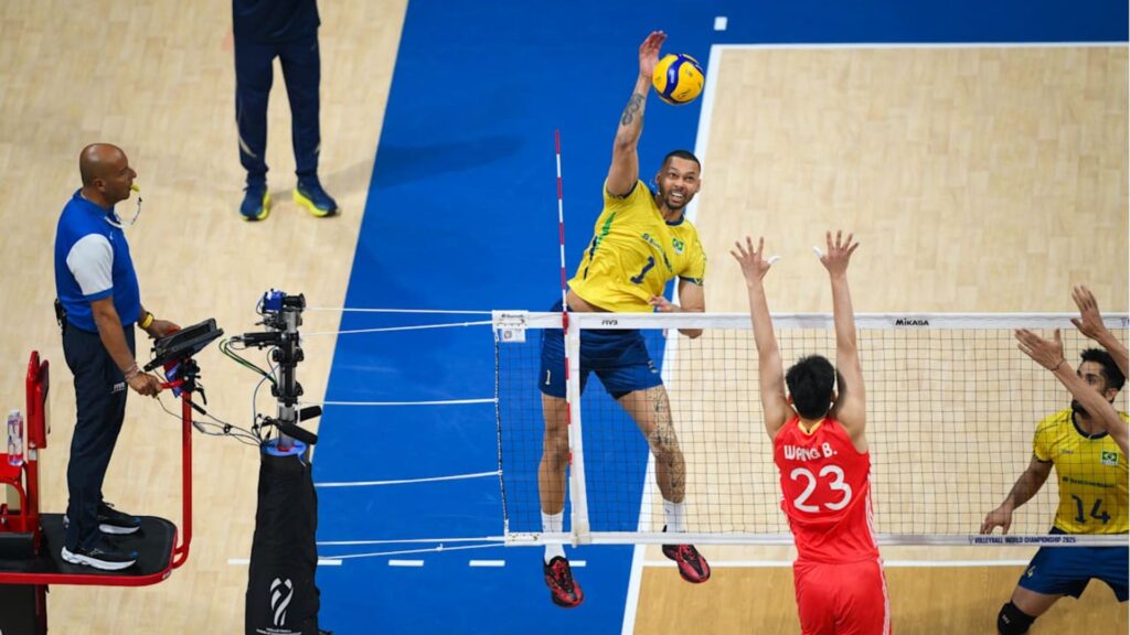 O Brasil estreou com vitória no Mundial de Vôlei Masculino, superando a China por 3 a 1 neste domingo, 14, com parciais de 19/25, 25/23, 25/22 e 25/21. Apesar de perder o primeiro set, a seleção conseguiu impor seu ritmo nos seguintes, reagir nos momentos decisivos e garantir os primeiros pontos na competição.